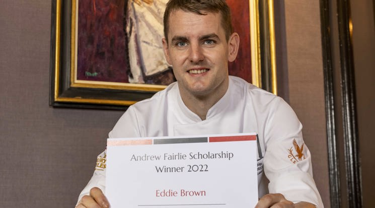 Eddie Brown was awarded the scholarship last year, earning him industry-wide recognition as an Andrew Fairlie scholar and a once-in-a-lifetime opportunity to build on his culinary education.