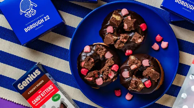 2025 sees the rollout of a full brand refresh, with new packaging now hitting shelves that reflects Genius’ identity as a modern premium bakery brand for the Free From community. The new brand identity, developed in partnership with creative agency Among Equals, is supported by strategic innovation, including their recent Sweet Treats expansion, a launch which went from concept to launch in just 3 months. The category first brand collaboration in partnership with Candy Kittens, a gluten free, plant-based Rocky Road that’s taken social media by storm since hitting shelves in April. Building on the buzz, Genius teamed up with cult Free From doughnut brand Borough 22 to create limited-edition Rocky Road doughnuts in July, driving excitement and visibility amongst the gluten free audience.